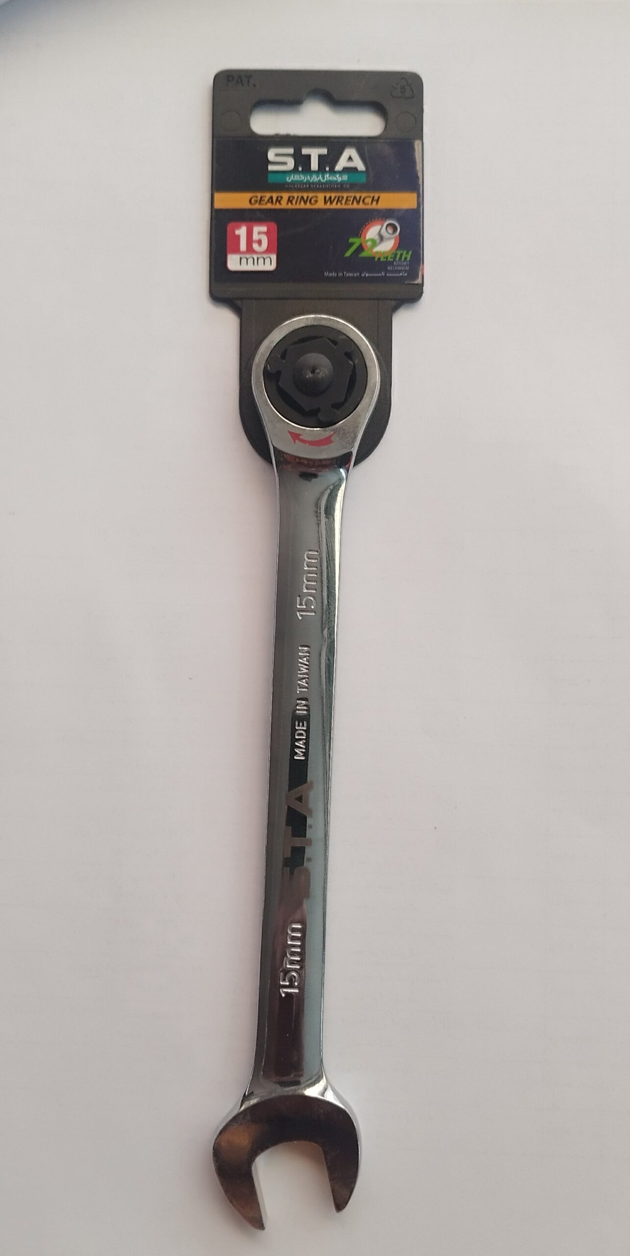 آچار یکسر رینگ جغجغه ای شماره 15 اس تی ای sta ساخت کشور تایوان و آلیاژ به کار رفته از کروم وانادیوم و 72 دنده